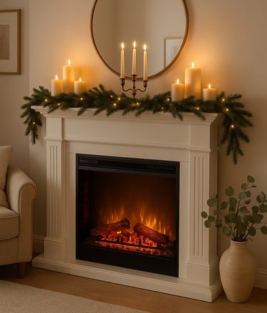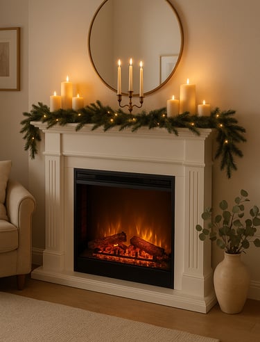 If you have a real fireplace, style it with firewood holders, candles, and seasonal garlands.